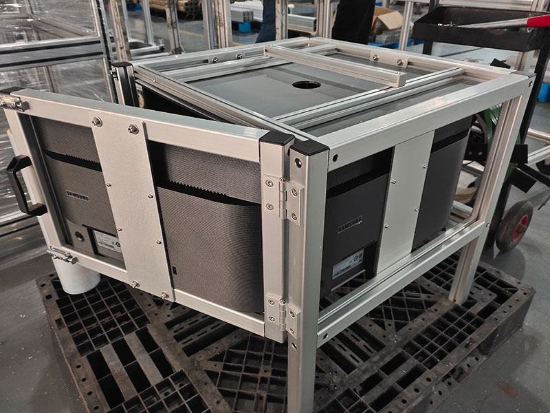 鋁型材框架制作的實(shí)驗(yàn)柜,四面安裝液晶顯示器,內(nèi)部放置實(shí)驗(yàn)動物,觀察動物在播放不同畫面時候的狀態(tài)。
