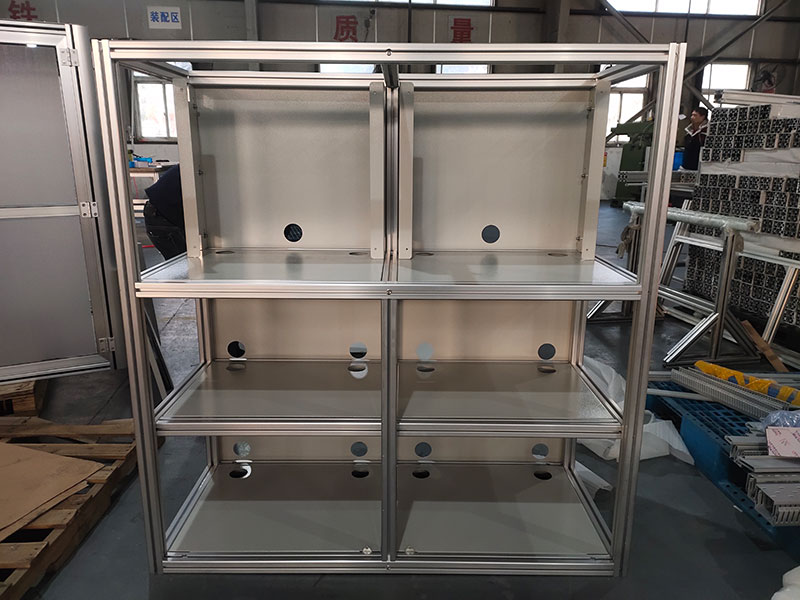 控制柜的主要功能是放置電氣設備,因此,需要選擇規格合適鋁型材進行制造,例如4040型材和4080型材,以及規格較大的6060型材、8080型材、80120型材、9090型材、100100型材。型材的具體規格可根據不同的承重要求選擇。