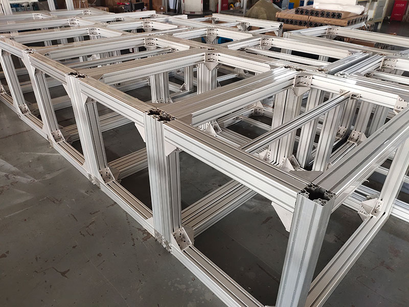鋁型材規格眾多,搭配鋁型材專用連接件,可實現自動化鋁型材機柜的快速組裝,而且經過陽極氧化的鋁型材,抗磨耐腐蝕,增加了鋁型材機柜的使用壽命,搭配其他輔件,如腳輪等,可以快速進行移動,非常方便。