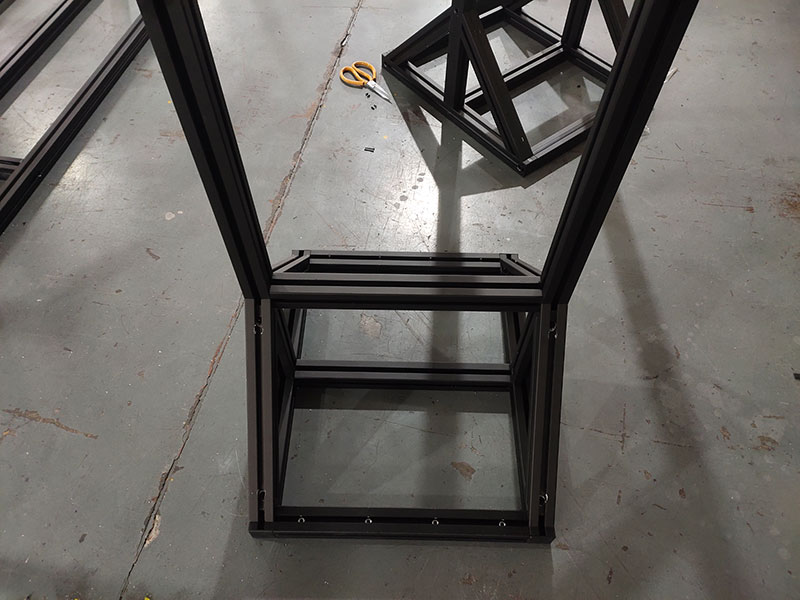 3、拓展性強:鋁型材展示架可以根據使用場景實現多種功能性需求,可以安裝移動腳輪、電子電氣組件、控制系統等。