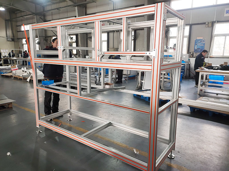 安裝蹄腳需要用到另外一種鋁型材配件——端面連接板,它們之間都是配套使用的,安裝非常簡單,用配套的螺栓螺母即可連接。